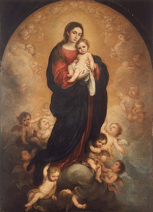 穆里罗《荣耀的圣母子》作品介绍:外文名Virgin and Child in Glory;画布,油彩Oil on canvas;纵236厘米,横169厘米;作于1673 年;藏于英国利物浦沃克美术画廊 Walker Art Gallery, Liverpool。