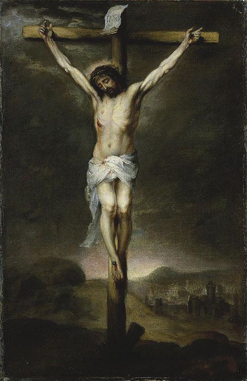 穆里罗《钉死于十字架》作品介绍:外文名The Crucifixion;画布,油彩Oil on canvas;纵50.8厘米,横33厘米;作于1670 - 1672 年;藏于美国纽约大都会美术馆 Metropolitan Museum of Art, New York。