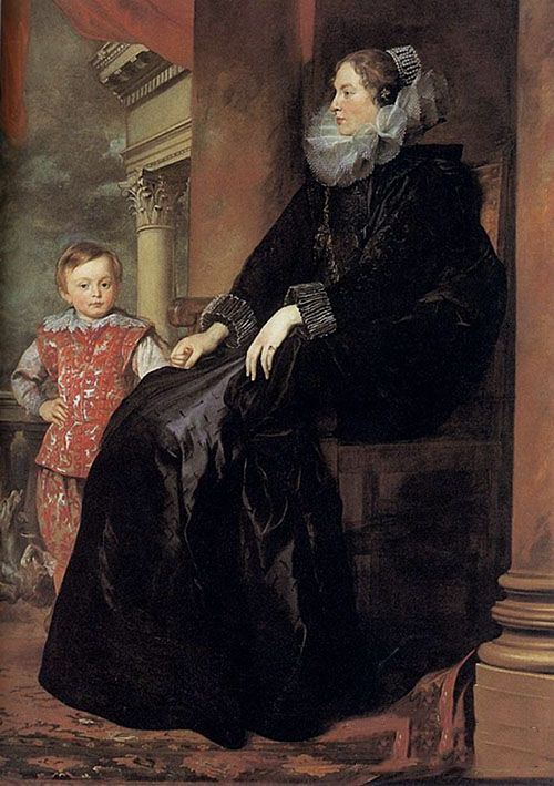 凡·代克《贵妇人和她的儿子》作品介绍:外文名 A Genoese Noblewoman and Her Son;画布,油彩Oil on canvas;纵189.2厘米,横139.7厘米;作于1626年;藏于美国华盛顿区国家画廊 National Gallery of Art at Washington,DC。