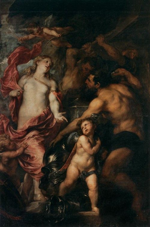 凡·代克《维纳斯请求锻造勇士的武器》作品介绍:外文名Venus asking Vulcan for Arms for Aeneas;画布,油彩Oil on canvas;纵220厘米,横145厘米;作于1627 - 1632 年;藏于法国巴黎罗浮宫 Musee du Louvre, Paris。