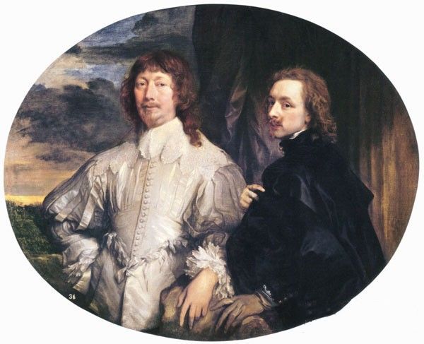 凡·代克《波特爵士和戴克》作品介绍:外文名Sir Endymion Porter and Van Dyck;画布,油彩Oil on canvas;纵119厘米,横175厘米;作于1632 - 1641 年;藏于西班牙马德里普拉多美术馆 Museo del Prado, Madrid。