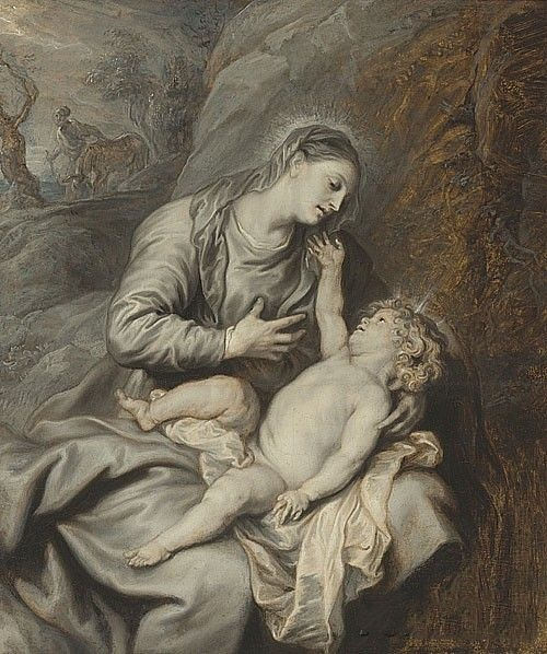 凡·代克《前往埃及途中》作品介绍:外文名Rest on the Flight into Egypt;画板,油彩Oil on panel;纵38.4厘米,横32.4厘米;作于不详;藏于私人收藏 private collection。
