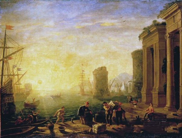 洛兰作品介绍:全名克劳德·洛兰,外文名Claude Lorrain,生于1600年,卒于1682年,法国著名风景画画家。他出生于法国东北部农村,曾做过食品工人,但其一生大部分时间也在意大利度过,克劳德·洛兰终生醉心于海景和意大利风景,克劳德·洛兰对罗马那些有古代遗迹的景色进行过大量的研究的描绘。普桑在风景画中追求哲理性,而洛兰却追求的是抒情的气氛。普桑作品中更多的是清晰、明朗和宁静,洛兰作品却常常显露出雾气迷蒙,光色炫目的效果。他的风景画是理想与梦幻的世界,是一种人为美化的景色,它唤起人们向往美好的情感。后来欧洲人常常以洛兰描绘的理想化风景为标准,寻找或布置洛兰式的风景园林。