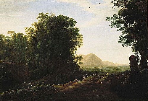 洛兰作品介绍:全名克劳德·洛兰,外文名Claude Lorrain,生于1600年,卒于1682年,法国著名风景画画家。他出生于法国东北部农村,曾做过食品工人,但其一生大部分时间也在意大利度过,克劳德·洛兰终生醉心于海景和意大利风景,克劳德·洛兰对罗马那些有古代遗迹的景色进行过大量的研究的描绘。普桑在风景画中追求哲理性,而洛兰却追求的是抒情的气氛。普桑作品中更多的是清晰、明朗和宁静,洛兰作品却常常显露出雾气迷蒙,光色炫目的效果。他的风景画是理想与梦幻的世界,是一种人为美化的景色,它唤起人们向往美好的情感。后来欧洲人常常以洛兰描绘的理想化风景为标准,寻找或布置洛兰式的风景园林。