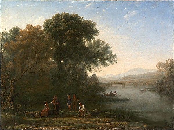 洛兰作品介绍:全名克劳德·洛兰,外文名Claude Lorrain,生于1600年,卒于1682年,法国著名风景画画家。他出生于法国东北部农村,曾做过食品工人,但其一生大部分时间也在意大利度过,克劳德·洛兰终生醉心于海景和意大利风景,克劳德·洛兰对罗马那些有古代遗迹的景色进行过大量的研究的描绘。普桑在风景画中追求哲理性,而洛兰却追求的是抒情的气氛。普桑作品中更多的是清晰、明朗和宁静,洛兰作品却常常显露出雾气迷蒙,光色炫目的效果。他的风景画是理想与梦幻的世界,是一种人为美化的景色,它唤起人们向往美好的情感。后来欧洲人常常以洛兰描绘的理想化风景为标准,寻找或布置洛兰式的风景园林。
