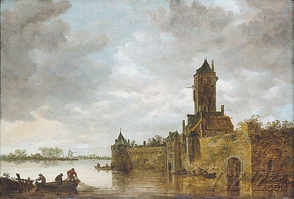 霍延《城堡前的河流》作品介绍:外文名Castle by a River;木板,油彩Oil on wood;纵66厘米,横97厘米;作于1647年;藏于美国纽约大都会美术馆 Metropolitan Museum of Art, New York。
