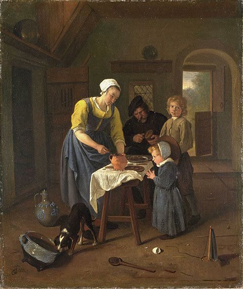 扬·斯丁《吃饭的农民家庭》作品介绍:外文名A Peasant Family at Meal Time;画布,油彩Oil on canvas;纵不详,横不详;作于1665 年;藏于英国伦敦国家画廊 National Gallery, London。