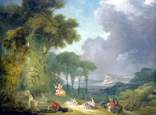 弗拉戈纳尔《汤秋千》作品介绍:外文名The Swing;画布,油彩Oil on canvas;纵185.5厘米,横215.9厘米;作于1775 - 1780 年;藏于私人收藏 private collection。