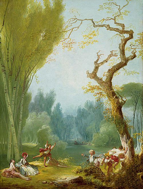 弗拉戈纳尔《马和骑士的游戏》作品介绍:外文名A Game of Horse and Rider;画布,油彩Oil on canvas;纵115厘米,横87.5厘米;作于1767 - 1773 年;藏于美国华盛顿区国家画廊 National Gallery of Art at Washington,DC。