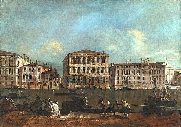 瓜尔迪《威尼斯:大运河与佩萨罗宫》作品介绍:外文名Venice:The Grand Canal with Palazzo Pesaro;画布,油彩Oil on canvas;纵92.7厘米,横130.9厘米;作于1755 - 1760 年;藏于英国伦敦国家画廊 National Gallery, London。