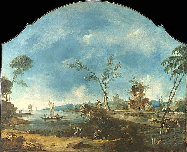 瓜尔迪《梦幻般的风景》作品介绍:外文名Fantastic Landscape;画布,油彩Oil on canvas;纵155.6厘米,横189.2厘米;作于1765年;藏于美国纽约大都会美术馆 Metropolitan Museum of Art, New York。