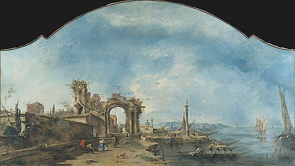 瓜尔迪《奇妙的风景》作品介绍:外文名Fantastic Landscape;画布,油彩Oil on canvas;纵155.6厘米,横273.1厘米;作于1765年;藏于美国纽约大都会美术馆 Metropolitan Museum of Art, New York。