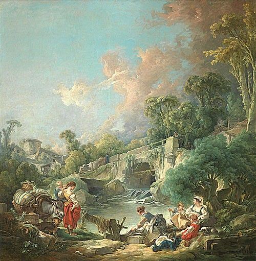 布歇《洗衣妇》作品介绍:外文名Washerwomen;画布,油彩oil on canvas;纵241.3厘米,横236.2厘米;作于1768年;藏于美国纽约大都会美术馆 Metropolitan Museum of Art, New York。